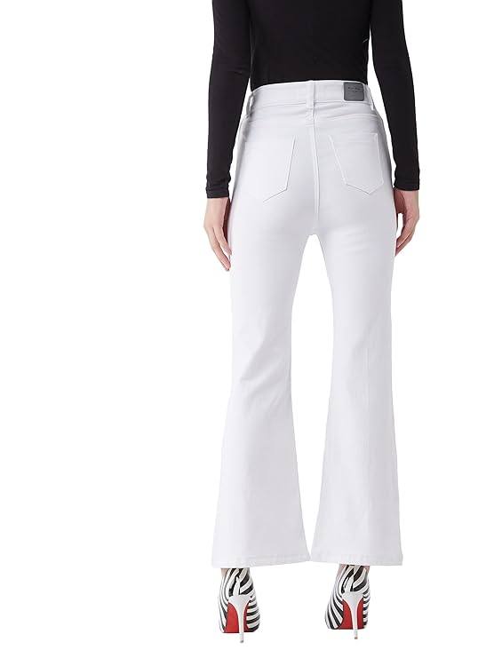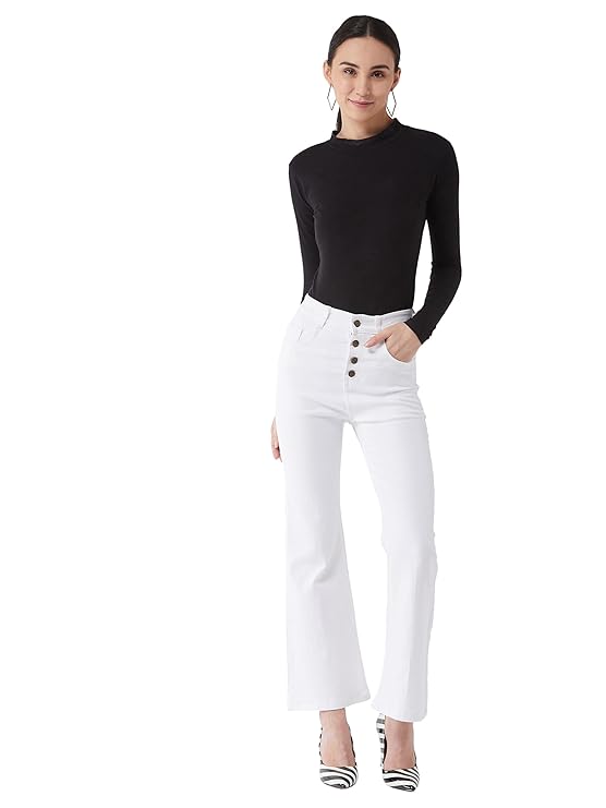 Miss Chase Women's White Bootcut High Rise Regular Stretchable Denim Jeans