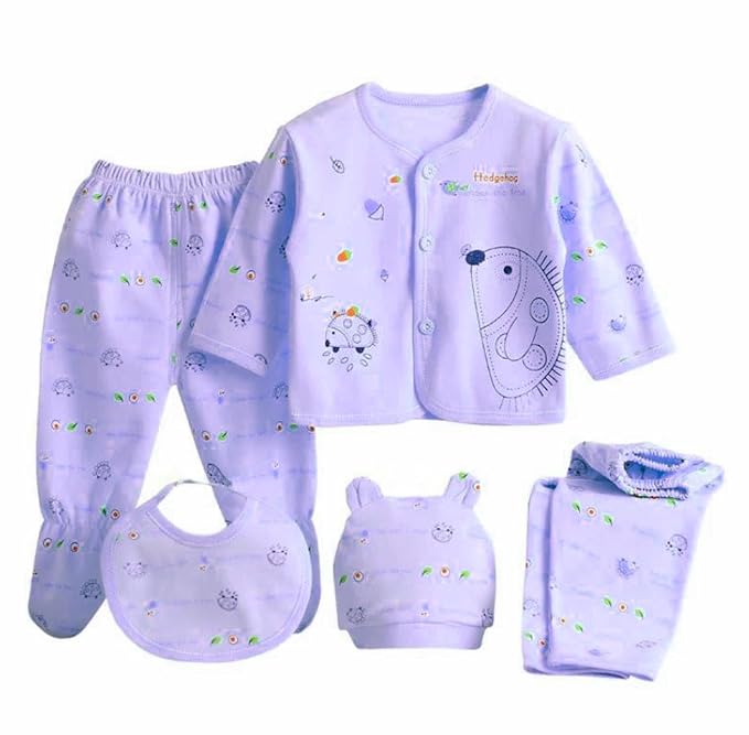 Baby will love it and will not feel any irritation. Material: 100%cotton. Size: 0-6 months baby.0-6 month infant baby 100% brand new and high quality Soft and breathable healthy cotton fabric Comfortable to touch and wear Animal pattern on the tops, footed, soft and cute.package including: 1 set (5 Pcs) Features: Soft material, High quality, comfortable and breathable. fashionable design. Cute animal pattern in front. It is a perfect for your baby to wear in summer and cold areas.It can be used as sleepwear and the baby will have cosy sleep.Infant Clothes First Gift for New Born Baby