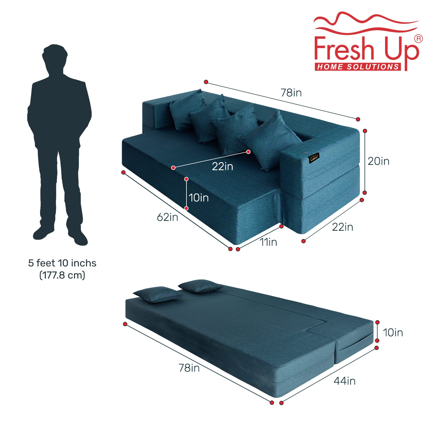 FRESH UP 4 Seater Sofa Cum Bed Polycotton Fabric 78x44x10 Inches Washable Cover with 4 Cushions, Low Floor Seating