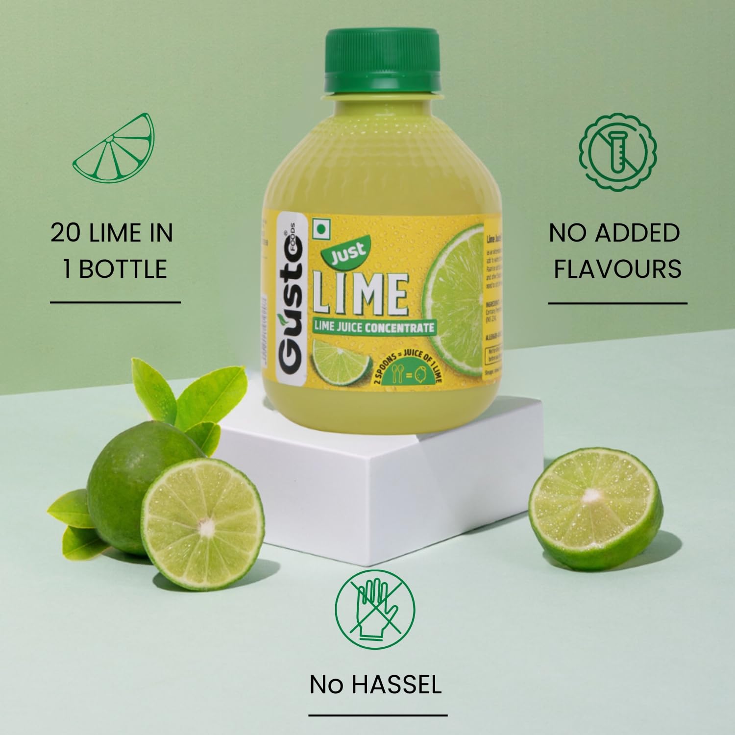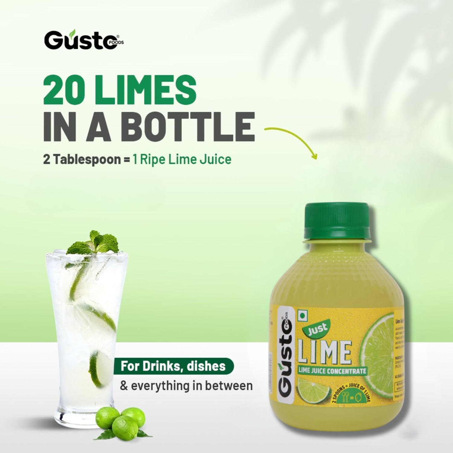 - Absolutely handy and convenient to consume, you don’t need to squeeze the limes at all! Just pour this concentrated juice and mix it with water, add your sweetener and gulp it down!