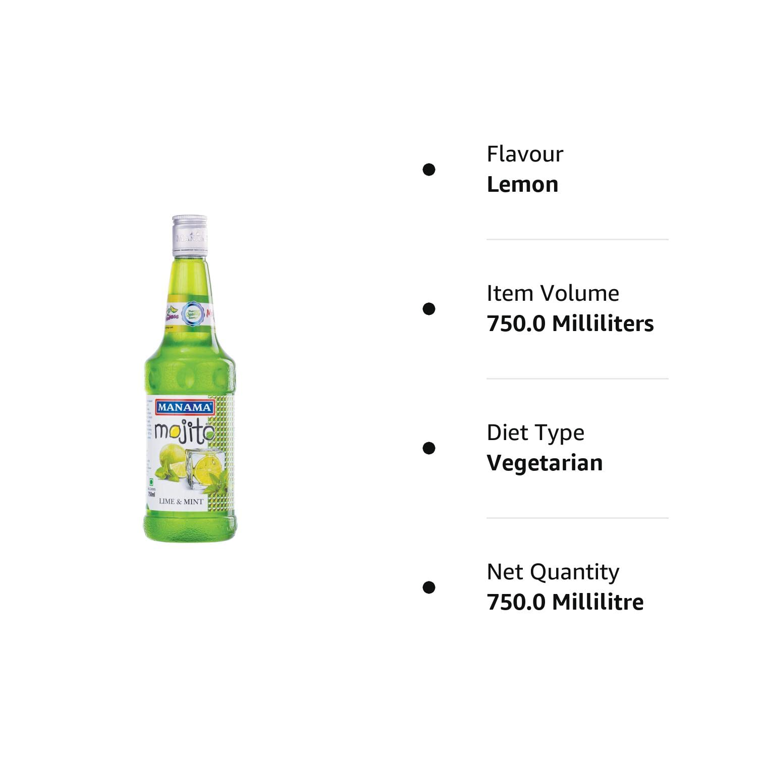 Manama Lime and Mint Mojito Syrup | Mixer for Mocktails, Cocktails, Drinks, Juices, Beverages | Non Alcoholic Mix 750ML Bottle