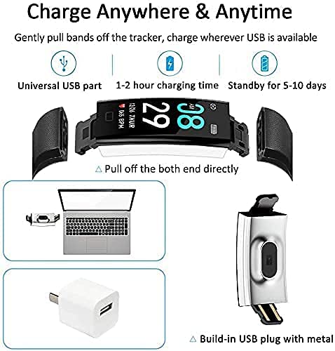 - Waterproof: Not for swimming or diving, Standby time: 3 days & above, this product uses professional Bluetooth RF signal and custom algorithm. [CHARGER NOT INCLUDED] - Pull out the strap and there is a USB plug in one side of the watch. Insert the plug into any normal USB adaptor and it will charge.