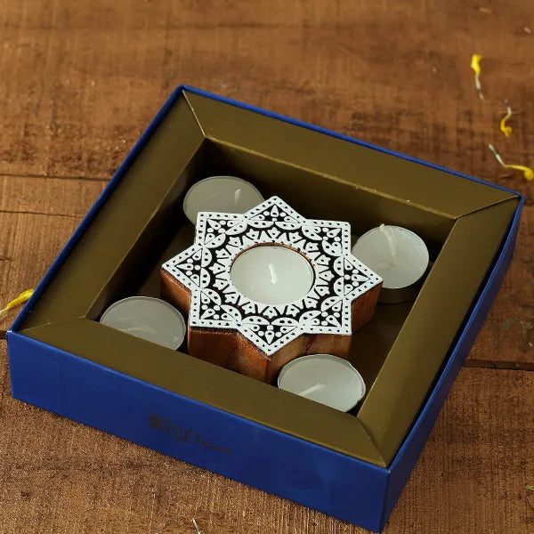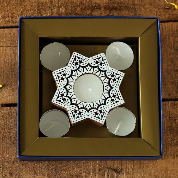 Sanganeri woodblock prints look fabulous. But when a beautiful flower diya comes wrapped in a Sanganeri wooden block it is a celebration of glint, glamour and style. Perfect to rock the interiors for a festive feel. Great for gifting too.